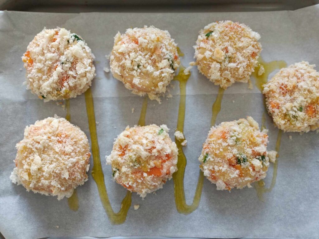 7. Ungete ogni polpetta con dell’olio extravergine d’oliva.