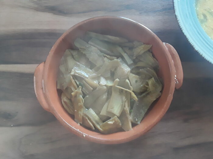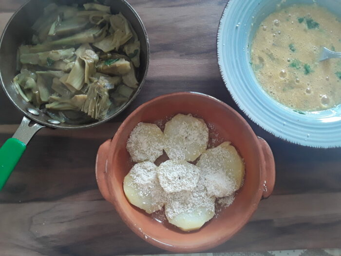 Questa ricetta tipica pugliese e anche barese nasce dalla necessità di rendere più sostanziosi i carciofi , l’aggiunta dell’uovo e delle sue proteine permette la realizzazione di un secondo o di una cena completa.