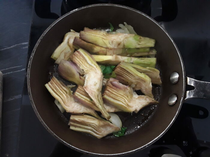 8. Preparati tutti gli ingredienti andiamo a realizzare i carciofi arraganati.