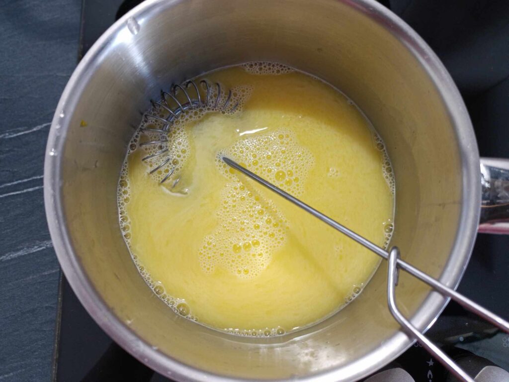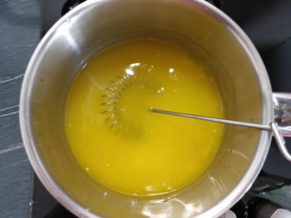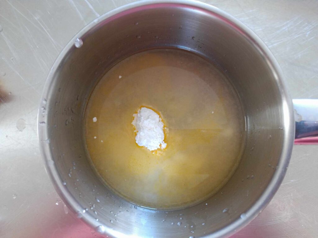 unite in un pentolino l’acqua, il succo di limone , lo zucchero , l’amido di mais , la curcuma o il colorante alimentare.