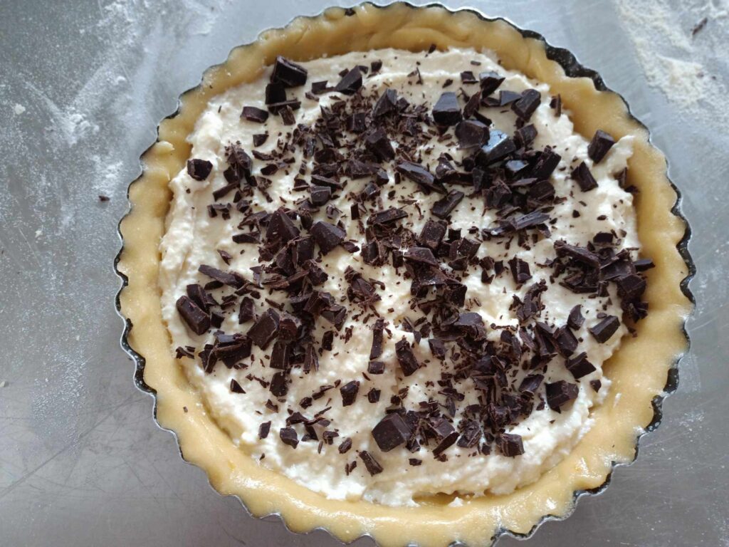 9. Foderate lo stampo e farcite con ricotta e cioccolato fondente tritato.