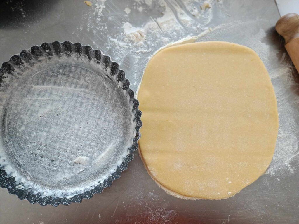 8. Preparata la pasta frolla e la crema di ricotta , procedete con la ricetta : stendete una parte di pasta frolla ,