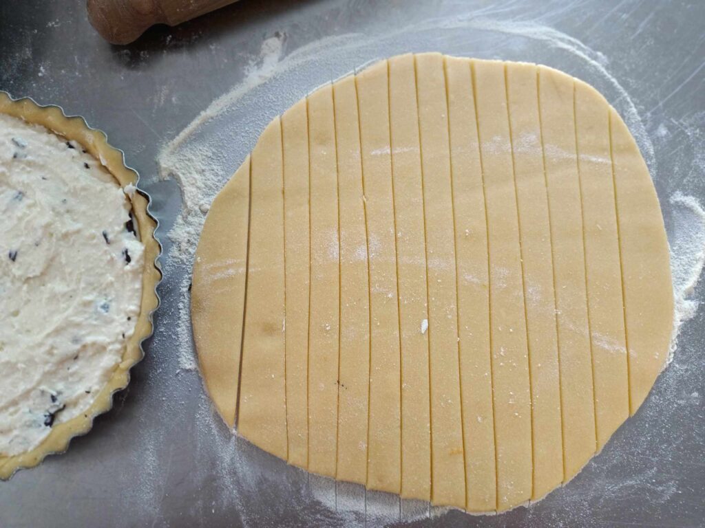 10. Stendete la pasta frolla rimasta e ricavate delle strisce.