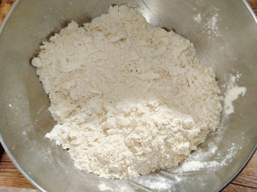 In una ciotola, raccogli la farina, lo zucchero a velo e il burro freddo.