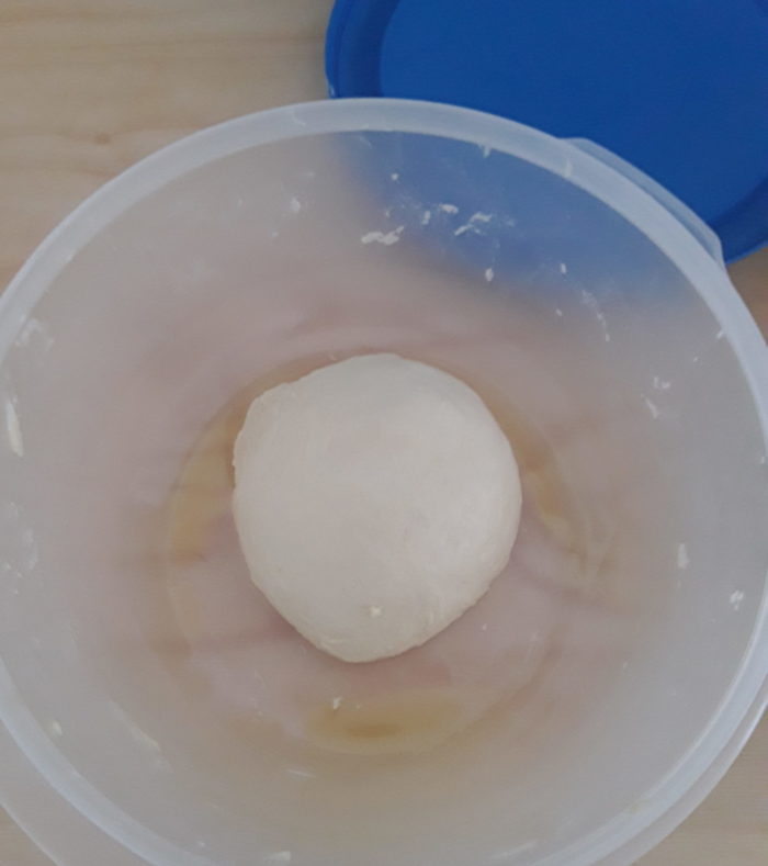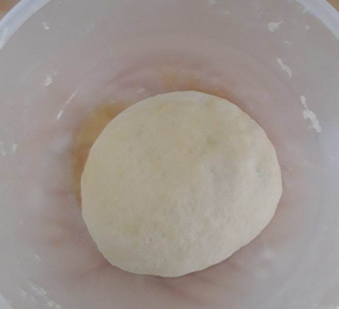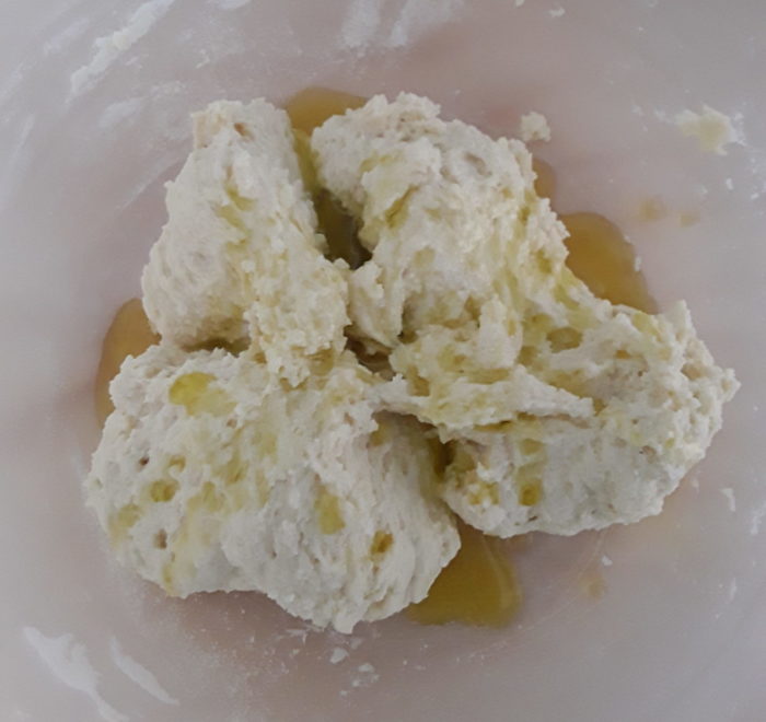 14- lasciate riposare l’impasto e procedete il primo giro di pieghe :