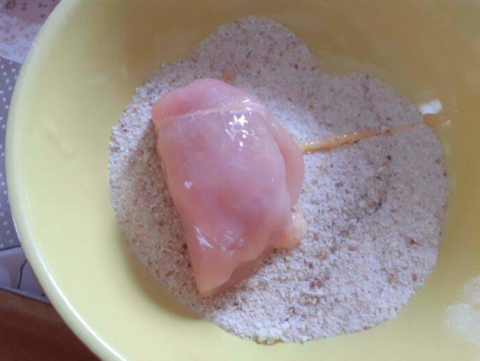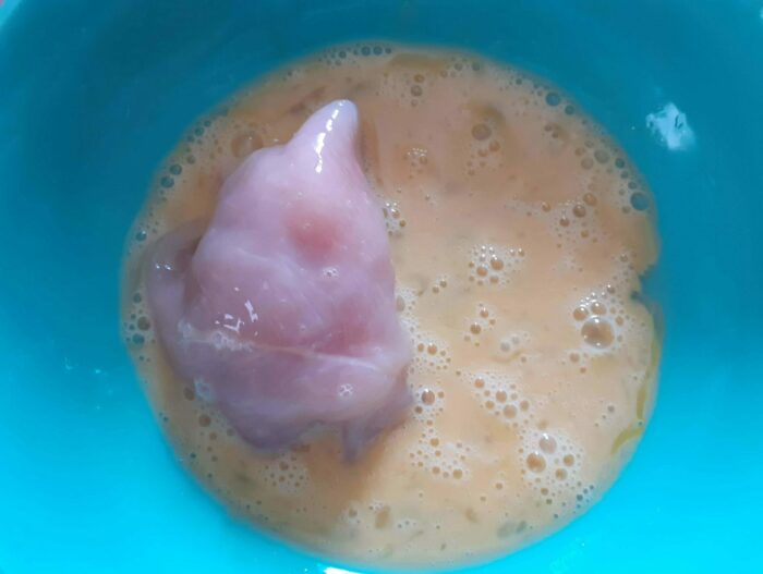 3– arrotoliamo e impaniamo prima nell’uovo.