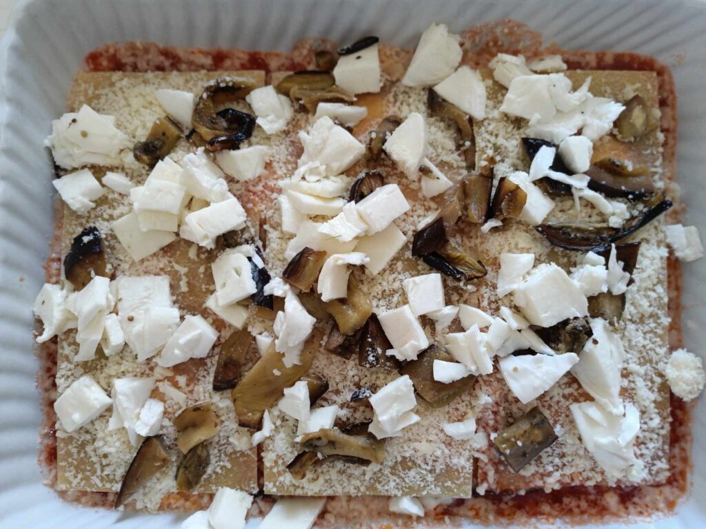 ( le mie sono secche e senza uova, nel caso utilizziate lasagne fresche all’uovo, dovrete sbollentarle e raffreddarle in acqua e quindi asciugarle prima di procedere alla preparazione).