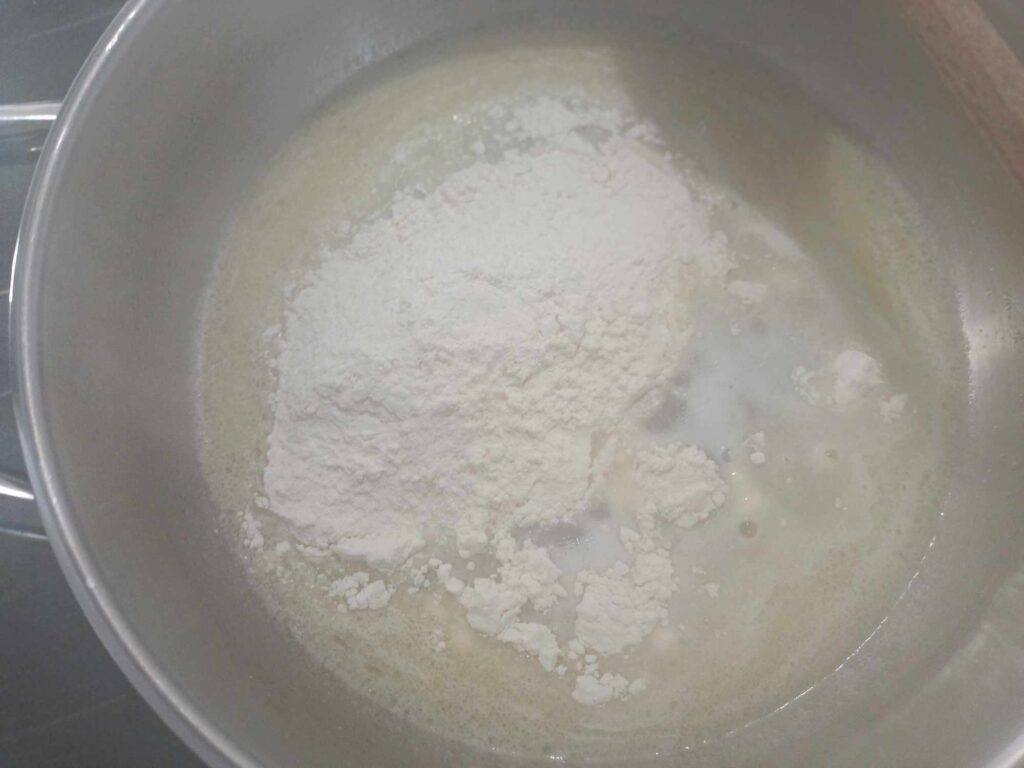 2. Lasciate sciogliere il burro a fiamma moderata , non appena l’acqua accenna il bollore versate la farina ,
