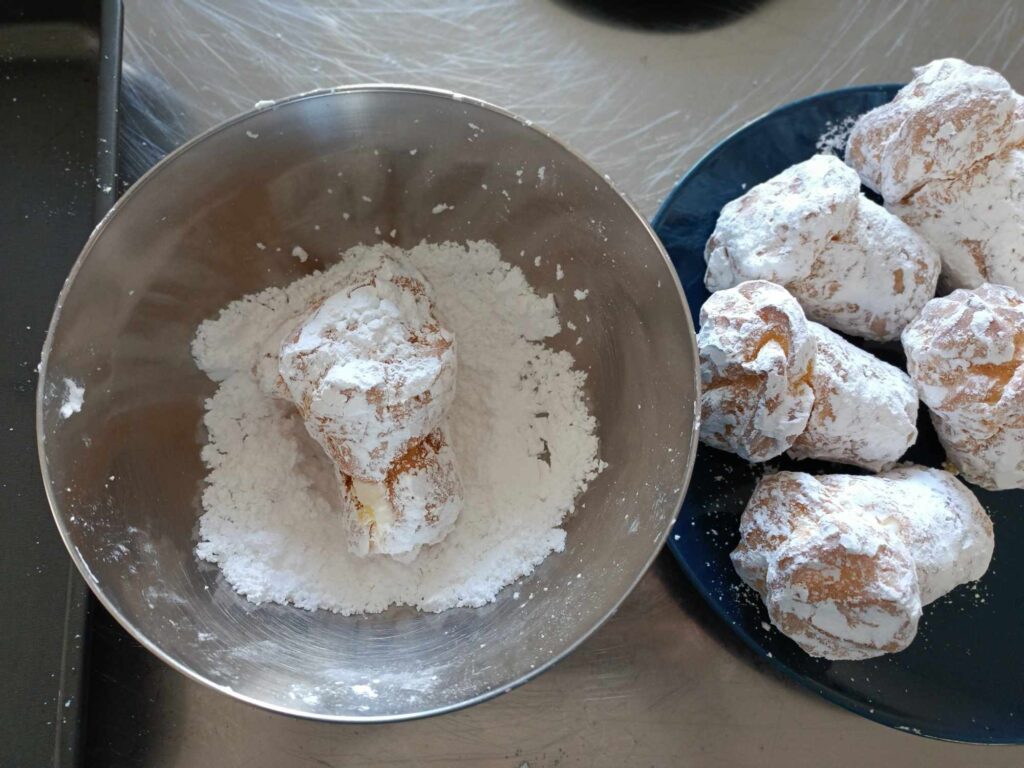 15. Avvolgete i Lulù nello zucchero a velo fino a ricoprirli completamente.