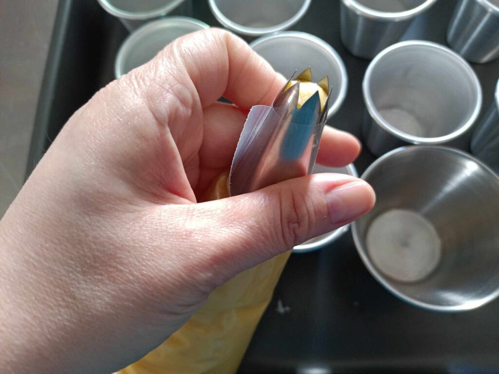 8. Prendete gli stampini da babà e riempite fino a metà .