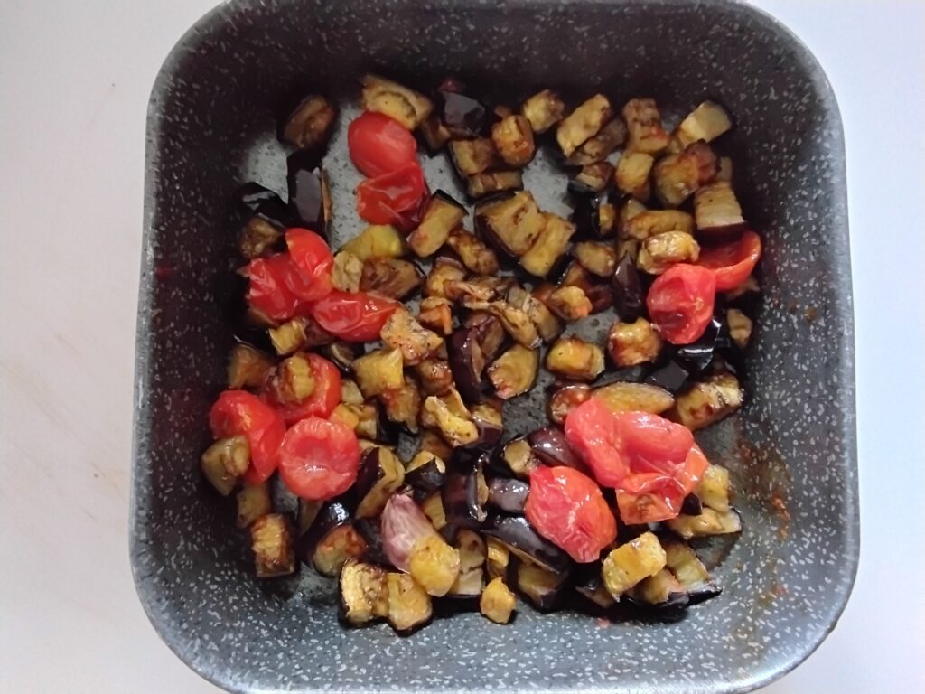 3. Aggiungi I pomodori e prosegui la cottura per altri 5 minuti a 180°