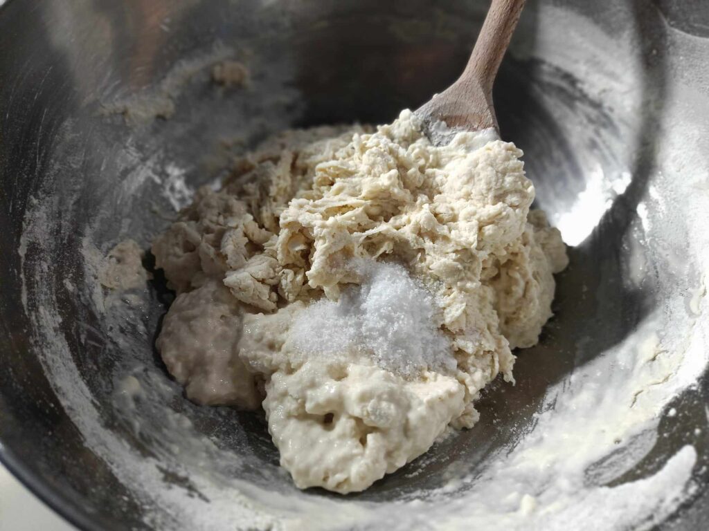4– Lasciate riposare per mezz’ora e fate un giro di pieghe, coprite e ripetete l’operazione per altre due volte ogni mezz’ora