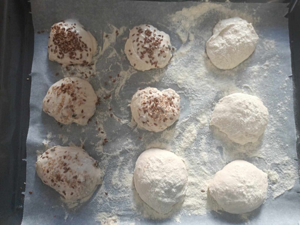 Io ho realizzato 15 panini piccoli . Non fate troppa attenzione alla forma , non è importante . Cospargete i panini con della semola o della farina.