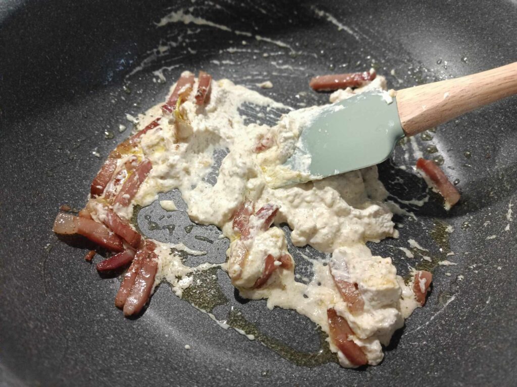 ( se necessario unite poca acqua di cottura della pasta).