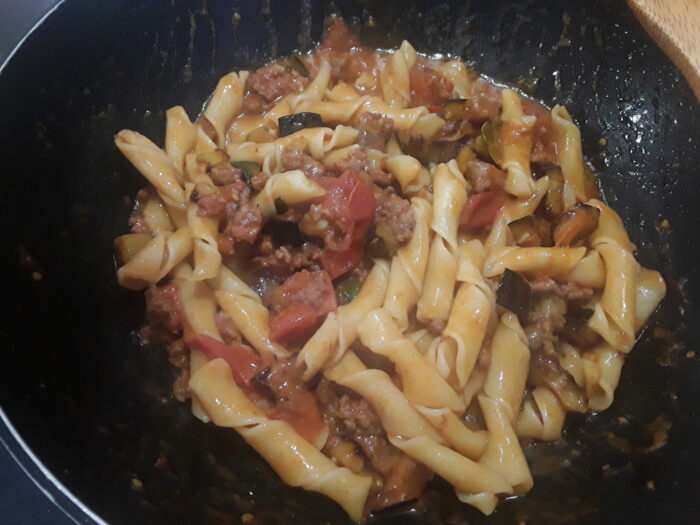 Cucina con me Graziella > Ricette > PRIMI PIATTI > PASTA CON MELANZANE E SALSICCIA