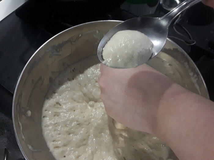Per tutte e due le ricette è previsto lo stesso procedimento, per la seconda vanno solo aggiunte le patate bollite e schiacciate alla farina .