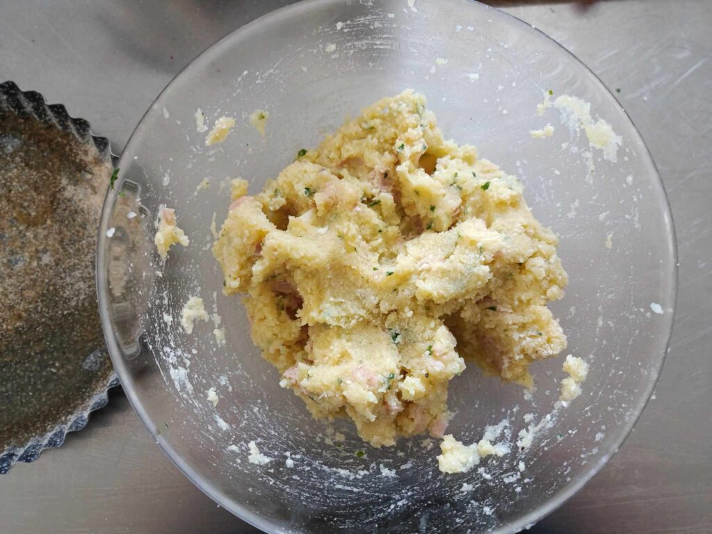 6. Ottenuto un composto morbido,  oleate una teglia e cospargete con del pangrattato