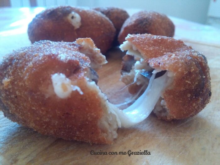 formate le polpette allungate e all’interno aggiunte un pezzo di mozzarella,