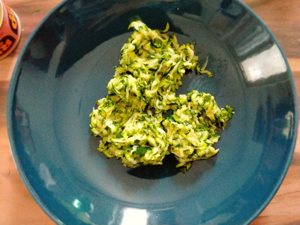 Lava le zucchine e grattugiale con una grattugia a fori larghi , aggiungi il sale e lascia riposare per 10 minuti.