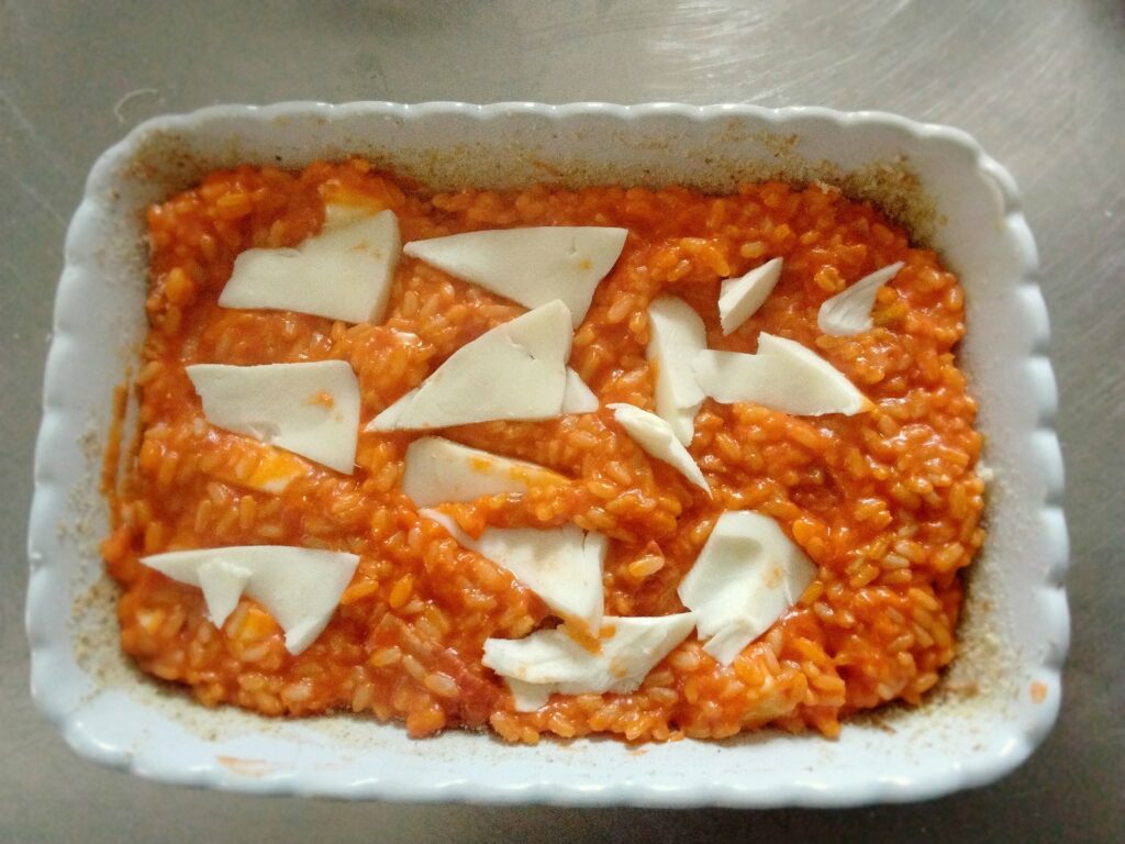 - Il riso deve essere molto al dente prima di andare in forno.