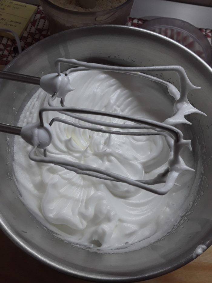 6. Unite , con movimenti dal basso verso l’alto,  gli albumi a cucchiaiate.