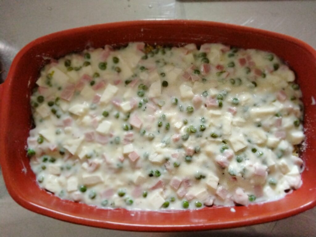 Facile da preparare , versatile e delizioso, questo sformato è perfetto per celiaci e intolleranti al glutine. Per realizzarlo avremo bisogno di : riso allo zafferano , besciamella con prosciutto, mozzarella, piselli e parmigiano grattugiato.