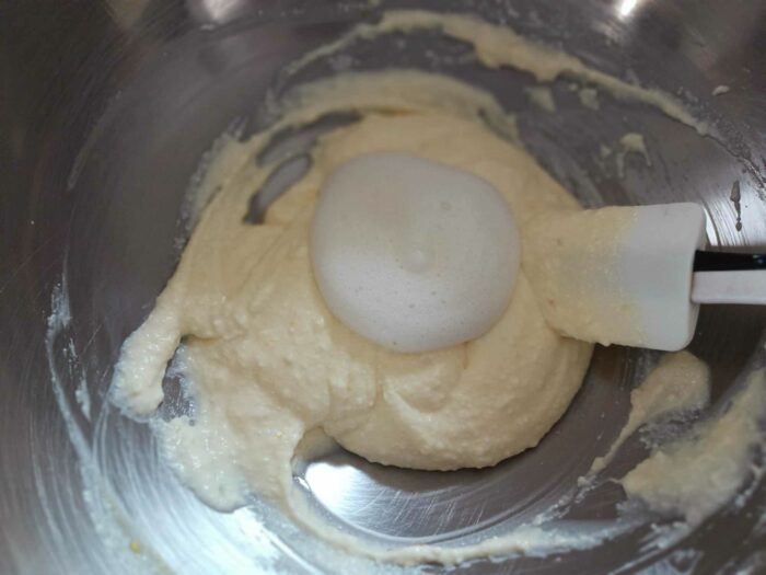 6. Unite l’albume alla crema di ricotta con delicatezza , mescolando dal basso verso l’alto per non smontare il tutto.