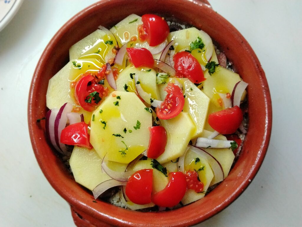 La tiella nasce a Bari e nella sua provincia come piatto povero di recupero, cucinato in grandi teglie di terracotta. Il nome “tiella” deriva proprio dal recipiente in cui veniva preparato, che permetteva una cottura uniforme degli ingredienti, combinando il profumo del mare (le cozze) con la dolcezza delle patate e l’amido del riso.